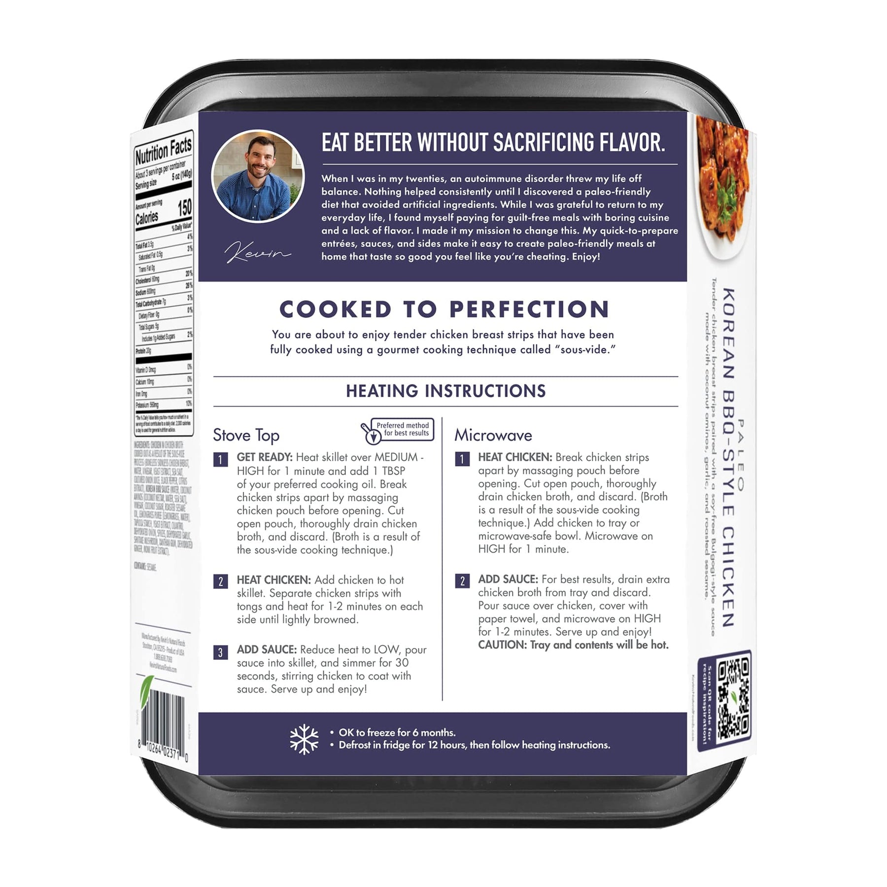 Chicken In Chicken Broth Cooked Out As A Result Of The Sous-Vide Process (Boneless Skinless Chicken Breast, Water, Vinegar, Yeast Extract, Sea Salt, Cultured Onion Juice, Black Pepper, Citrus Extract), Korean BBQ Sauce (Water, Coconut Aminos [Coconut Nectar, Water, Sea Salt], Vinegar, Coconut Sugar, Roasted Sesame Oil, Lemongrass Puree [Lemongrass, Water], Tapioca Starch, Yeast Extract, Cilantro, Dehydrated Onion, Spices, Dehydrated Garlic, Shiitake Mushroom, Xanthan Gum, Dehydrated Ginger, Monk Fruit Extract).